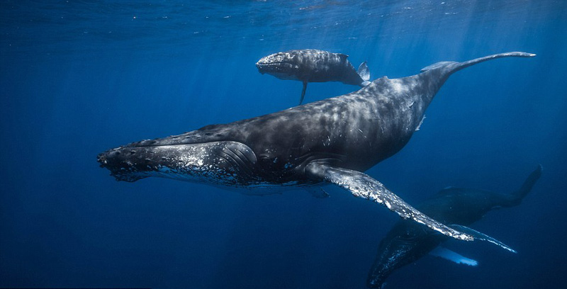 摄影师水下拍摄座头鲸英姿