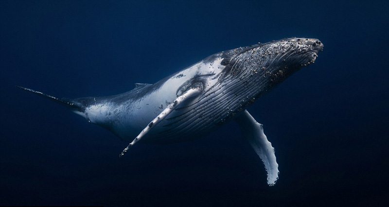摄影师水下拍摄座头鲸英姿