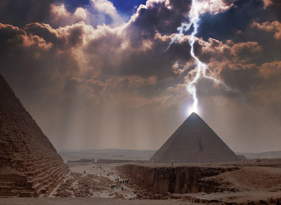 摄影师杰森·贝尼(Jason Bennee)抓拍到吉萨大金字塔(Great Pyramid of Giza)被闪电击中的瞬间。(网页截图)