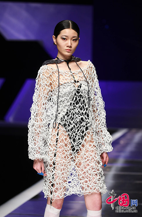 2016年3月25日,模特在梅赛德斯-奔驰中国国际时装周(2016/2017秋冬系列)上展示青年设计师设计的时装作品。陈健男 摄