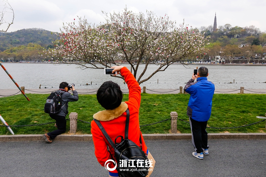 浙江在线3月24日讯(浙江在线记者 于诗奇摄)“阳春三月,莺飞草长。苏白两堤,桃柳夹岸。”苏白两堤上的桃柳一直是杭州西湖边一道靓丽的风景线。