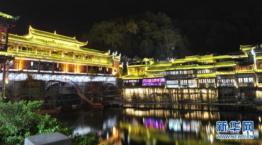 3月28日夜,旅游胜地湖南湘西凤凰古城彩灯齐放、霓虹闪烁,照亮沱江沿岸古城核心景区。据悉,湖南湘西凤凰古城沱江风光带夜景亮化工程于2011年正式启用,运用灯光的强弱、冷暖、色调和层次感,将古城的“山、水、城、人、文”等特点融为一体。2015年以来,当地政府强化了核心景区道路照明设施的维护并实施了亮化延伸工程,不断提升旅游形象。