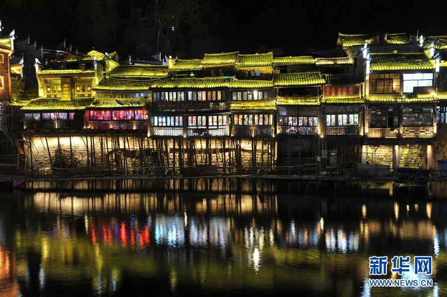 3月28日夜,旅游胜地湖南湘西凤凰古城彩灯齐放、霓虹闪烁,照亮沱江沿岸古城核心景区。据悉,湖南湘西凤凰古城沱江风光带夜景亮化工程于2011年正式启用,运用灯光的强弱、冷暖、色调和层次感,将古城的“山、水、城、人、文”等特点融为一体。2015年以来,当地政府强化了核心景区道路照明设施的维护并实施了亮化延伸工程,不断提升旅游形象。
