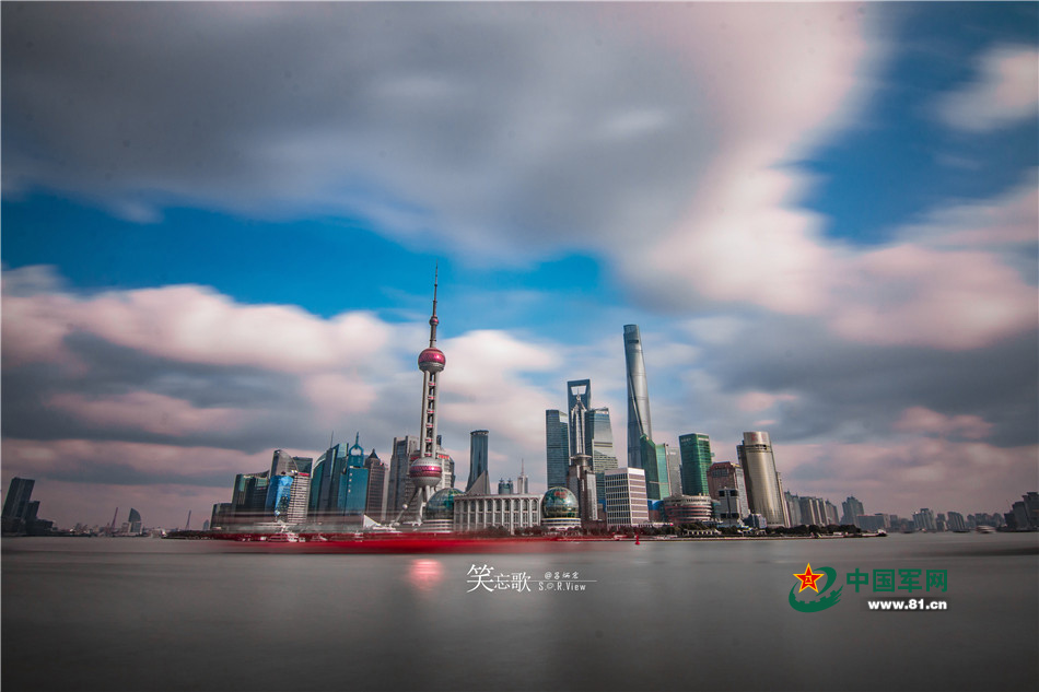 长时间曝光展示陆家嘴的风云际会。吕炳宏 摄影