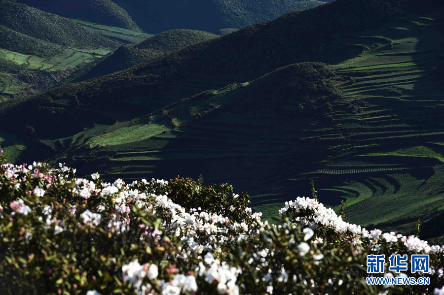 云南昭通市昭阳区大坪子山丘中的杜鹃花(6月4日摄)初夏时节,在地处乌蒙山深处的云南省昭通市昭阳区靖安镇海拔近3000米的大坪子村,上万亩高山杜鹃花竞相绽放,美景如画。新华社记者杨宗友 摄