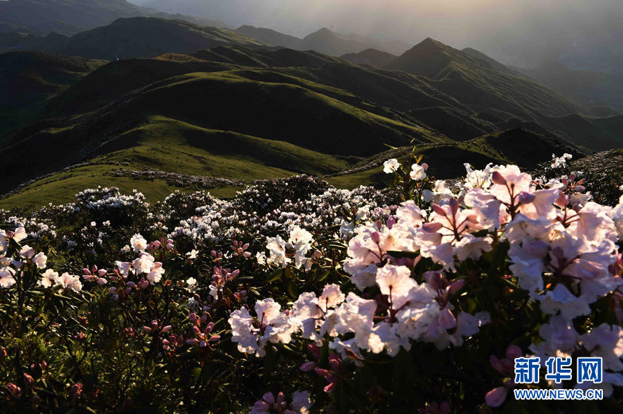 云南昭通市昭阳区大坪子山丘上的杜鹃花(6月4日摄)初夏时节,在地处乌蒙山深处的云南省昭通市昭阳区靖安镇海拔近3000米的大坪子村,上万亩高山杜鹃花竞相绽放,美景如画。新华社记者杨宗友 摄