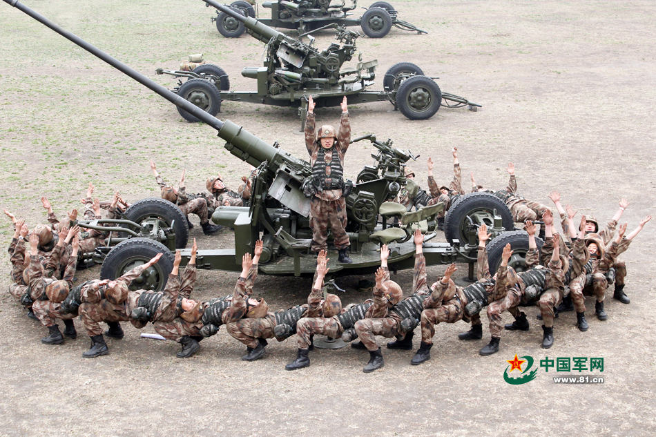 陆军第13集团军某师高炮团在训练休息时间开展简单趣味的“看谁Hold住”耐力小比赛,活跃官兵训练氛围。胡靖摄影