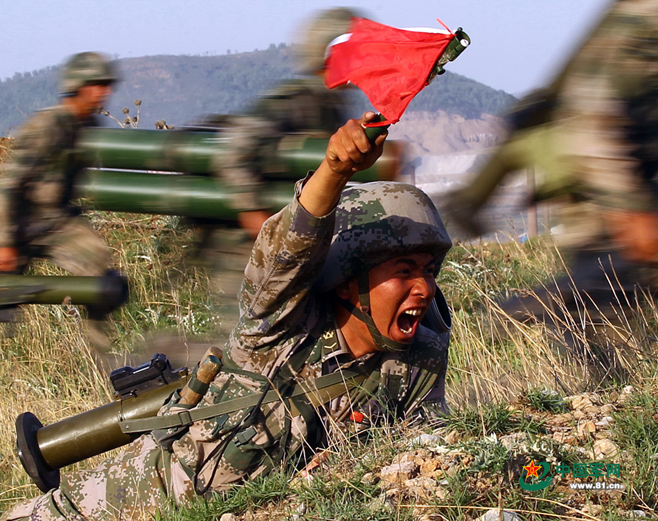 2013年5月12日,共产党员、济南军区某摩步旅一连一排一班班长苗联汶在班进攻中,带领大家抢占阵地。这是该连当天在阵地上进行的第八次进攻演练。