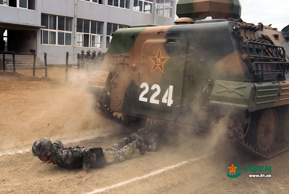 2014年9月12日,战车从一列军人身上驶过,位于排头的是指导员王洪涛。在当天进行的心理训练中,指导员说,你们看我怎么做就跟着怎么做。