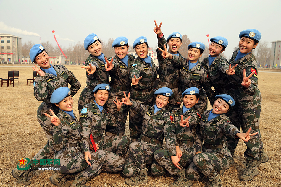 2016年1月4日,中国首支维和步兵营凯旋,这是维和步兵营首支女子步兵班13名队员,她们全部是党员。女兵们说,她们爱红妆,更爱武装。于是有了这张首次露面的合影。