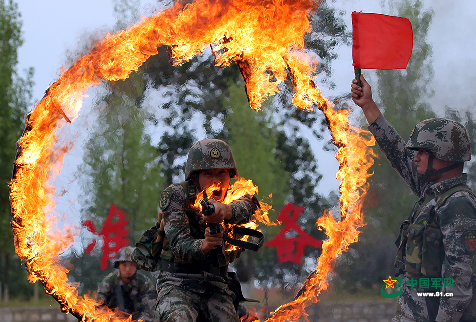 2015年6月24日,共产党员、陆军第26集团军某装甲旅“白老虎连”战士、精武标兵班长刘献辉在穿越火障,历练军人的血性胆量。