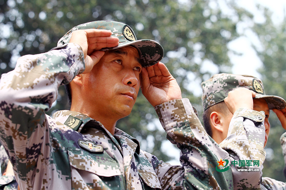 2012年7月16日,共产党员、陆军第26集团军防空旅一级军士长、“雷达神医”于世忠在队列训练中。旅常委中有三个是从他连队出来的,他说,当好普通一兵是他最大的心愿。