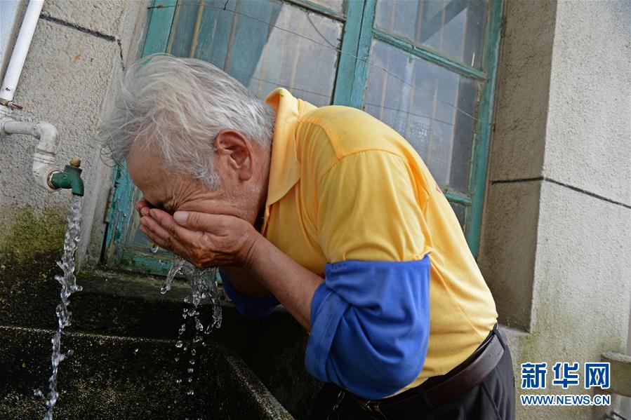 7月26日,熊全德在岸边洗脸降温。新华社记者 万象 摄