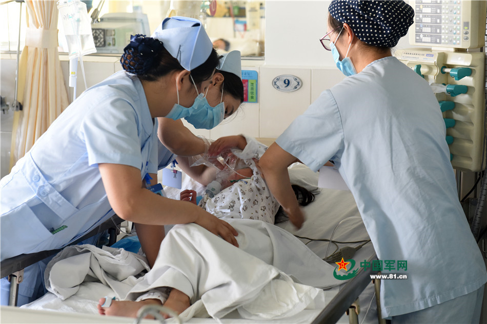 医护人员在给术后患儿清除淤痰。记者范显海摄影