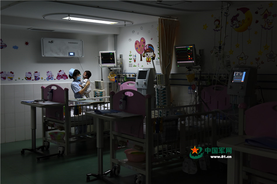 夜间值班护士在耐心照料哭闹的患儿。范显海摄影