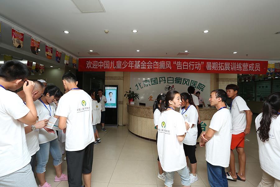 2016年8月5日,北京国丹白癜风医院一大早便迎来了一群特殊的孩子,他们是参加中国儿童少年基金会白癜风“告白行动”关爱困境青少年2016暑期拓展训练营的20余名白癜风小患者。
