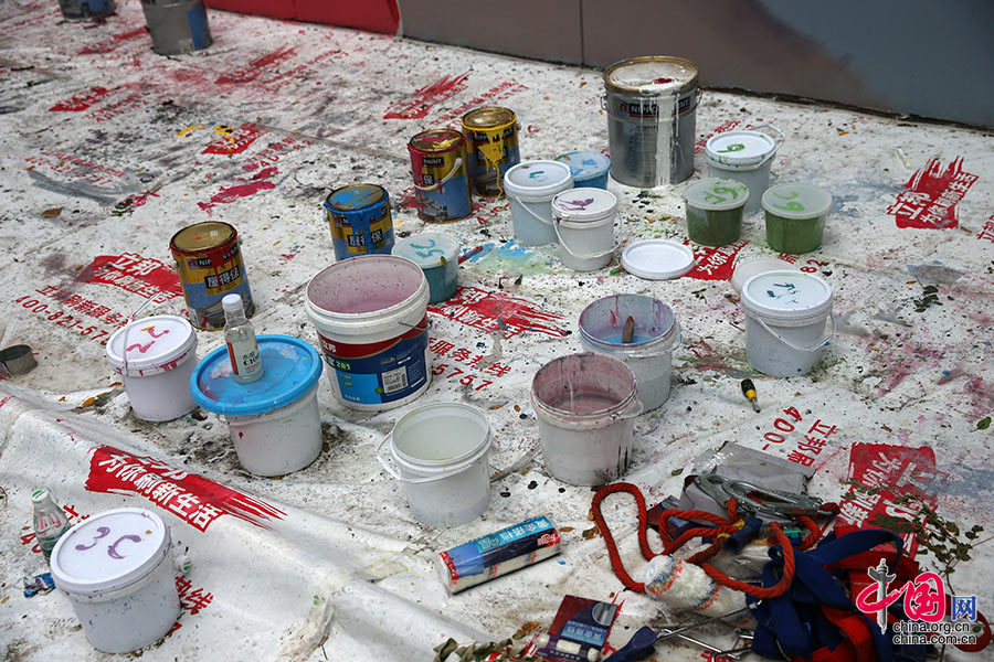8月12日,北京798艺术区,柒先生彩绘所需要的工具。