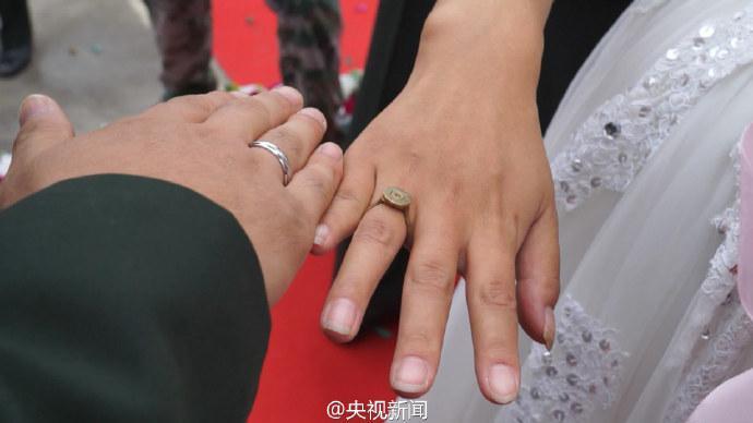 10月7日,在某装甲旅,32对新人参加了一场极具军味的集体婚礼。新郎中有人用弹壳手工打磨戒指送给新娘,也有人将战车开到现场,让爱人一睹英姿。新人们互换戒指,用军壶喝下交杯酒,留下他们对彼此一生的承诺!(央视记者翟浩)图片来源:央视新闻官方微博