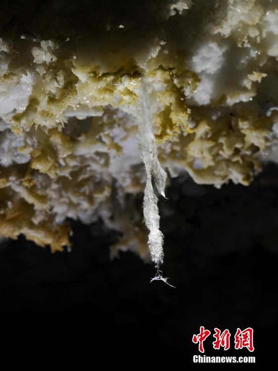 10月31日,微距镜头下的絮状石膏晶体。双河洞国家地质公园,位于贵州省遵义市绥阳县温泉镇,是中国最大的溶洞群。2016年4月中法联合洞穴科考队对外公布,贵州双河溶洞目前已探明长度为186.333公里,洞穴长度增加26公里多,居亚洲第二、中国第一,是世界最长的白云岩洞穴,也是世界面积最大的天青石沉积洞穴。中新社记者贺俊怡 摄