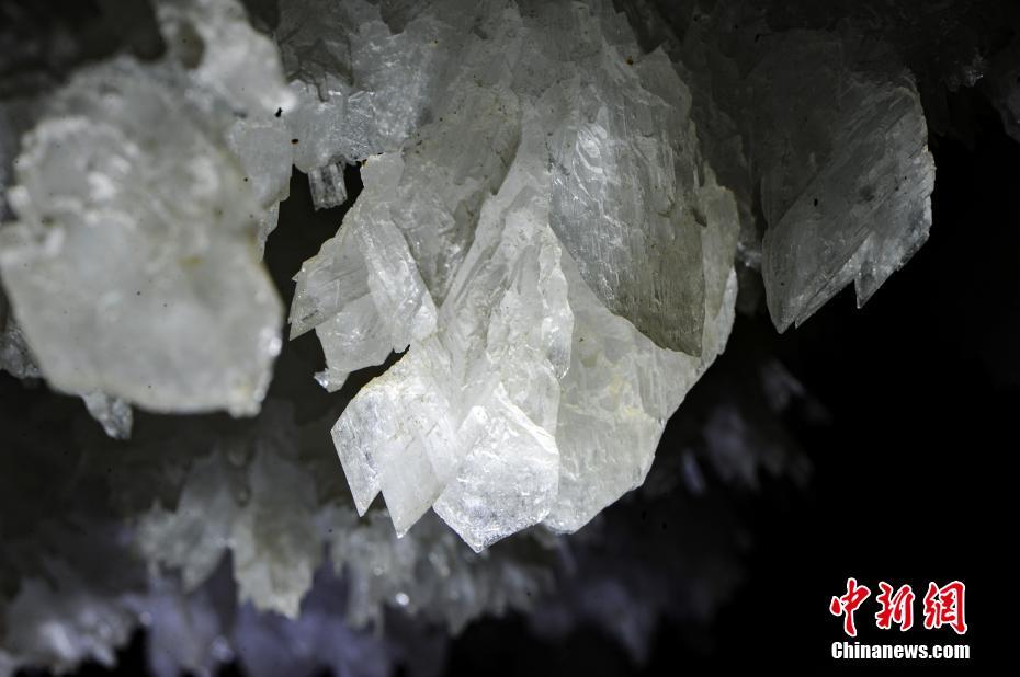 10月31日,微距镜头下雪白的石膏晶体晶莹剔透。双河洞国家地质公园,位于贵州省遵义市绥阳县温泉镇,是中国最大的溶洞群。2016年4月中法联合洞穴科考队对外公布,贵州双河溶洞目前已探明长度为186.333公里,洞穴长度增加26公里多,居亚洲第二、中国第一,是世界最长的白云岩洞穴,也是世界面积最大的天青石沉积洞穴。中新社记者贺俊怡 摄