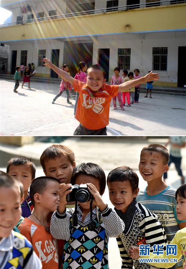拼版照片的上图为课外活动中“展翅飞翔”的学生(弄勇小学摄影梦想社10月12日摄);下图为同学们使用相机拍摄课外活动(新华社记者黄孝邦10月12日摄)。广西大化瑶族自治县板升乡弄勇小学地处山区深处,当地自然条件恶劣,经济发展落后,交通极为不便。近年来,随着脱贫攻坚工作的逐步开展,往昔落后的校园基础设施和教学设备不断得到改善,孩子们的校园生活也慢慢变得丰富多彩。新华社发
