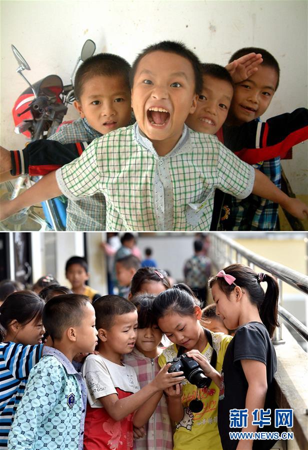 拼版照片的上图为同学们在课间玩耍(弄勇小学摄影梦想社10月12日摄);下图为同学们在观看刘顺媛(右二)刚拍摄的照片(新华社记者黄孝邦10月12日摄)。广西大化瑶族自治县板升乡弄勇小学地处山区深处,当地自然条件恶劣,经济发展落后,交通极为不便。近年来,随着脱贫攻坚工作的逐步开展,往昔落后的校园基础设施和教学设备不断得到改善,孩子们的校园生活也慢慢变得丰富多彩。新华社发