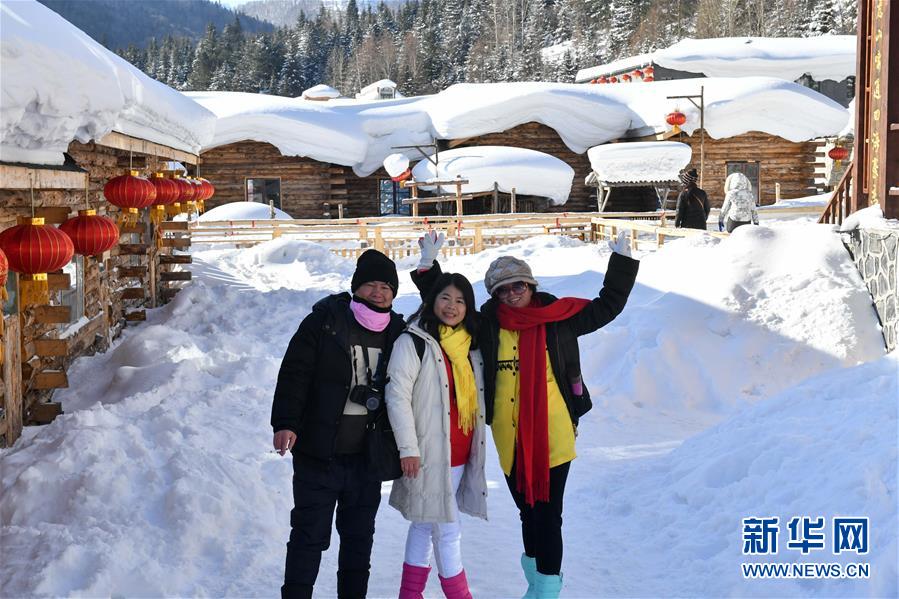 2月24日,游客在“中国雪乡”参观游览。素有“中国雪乡”之称的黑龙江省大海林林业局双峰林场,冬季雪期长达7个月左右,处处银装素裹、玉树琼枝,吸引很多游客。新华社记者 王松摄