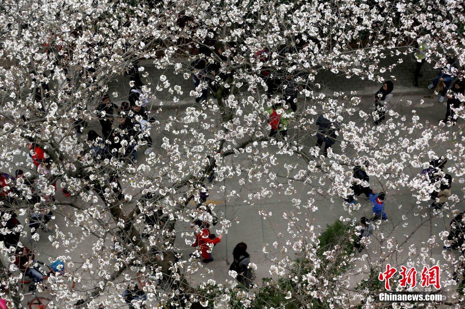 3月11日,武汉大学内樱花绽放,吸引众多赏花人前来观赏。中新社记者 张畅 摄