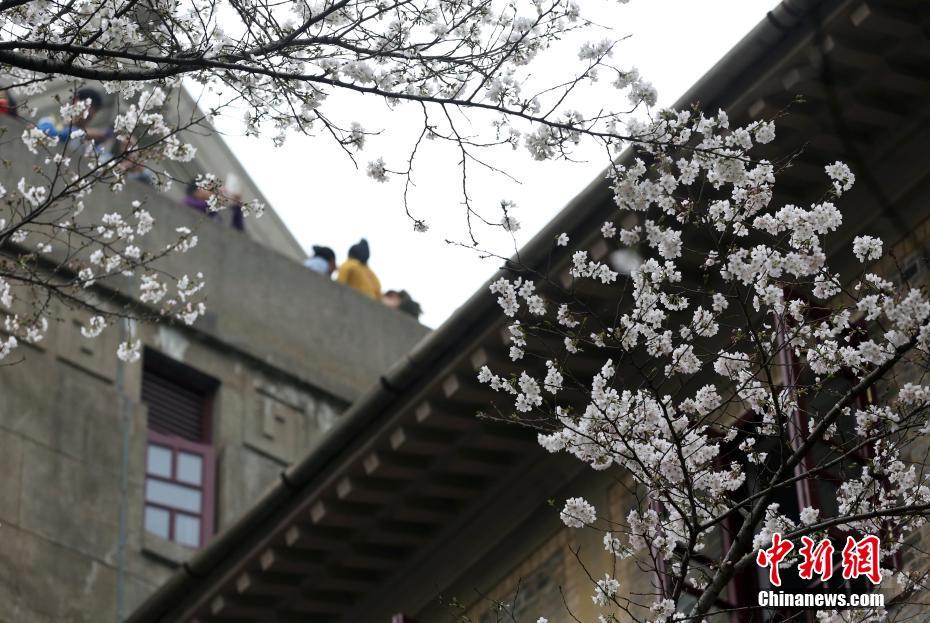 3月11日,武汉大学内樱花绽放,吸引众多赏花人前来观赏。中新社记者 张畅 摄