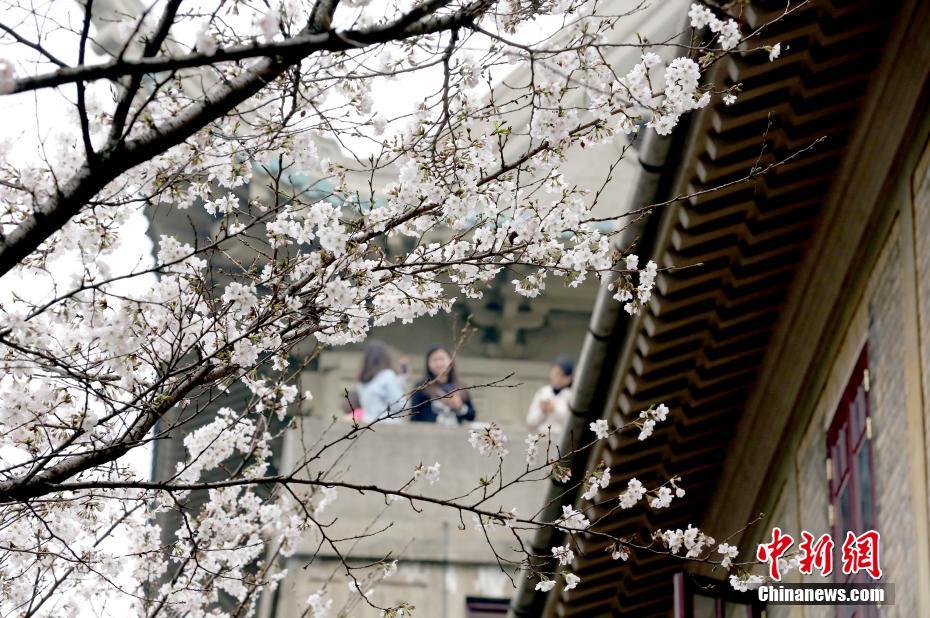 3月11日,武汉大学内樱花绽放,吸引众多赏花人前来观赏。中新社记者 张畅 摄