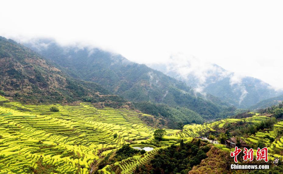 3月18日,春雨过后,江西省婺源县满山遍野的油菜花、粉墙黛瓦的徽派民居与飘渺弥漫的云雾交相辉映,构成一幅唯美迷人的水墨画,美不胜收。程新德 摄
