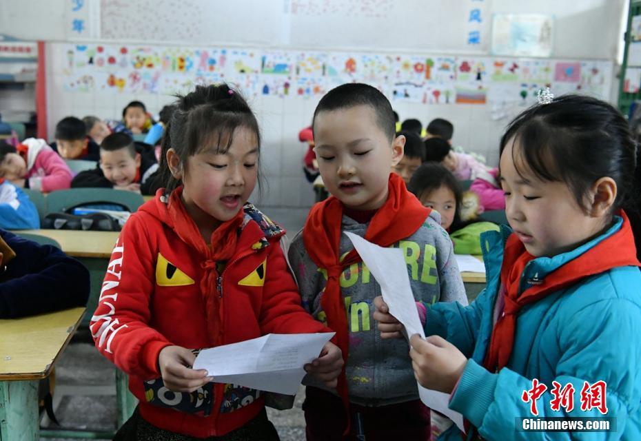 考虑到孩子的情况,学校特意把小天健安排在50多岁的陈秀华老师班上。陈老师将小天健安排在第一排,学校也为孩子准备了特殊课桌,方便孩子上课和学习。在老师和同学们的共同关心帮助和鼓励下,小天健学习成绩在班上名列前茅。图为课堂上小天健与同学朗诵。刘忠俊 摄