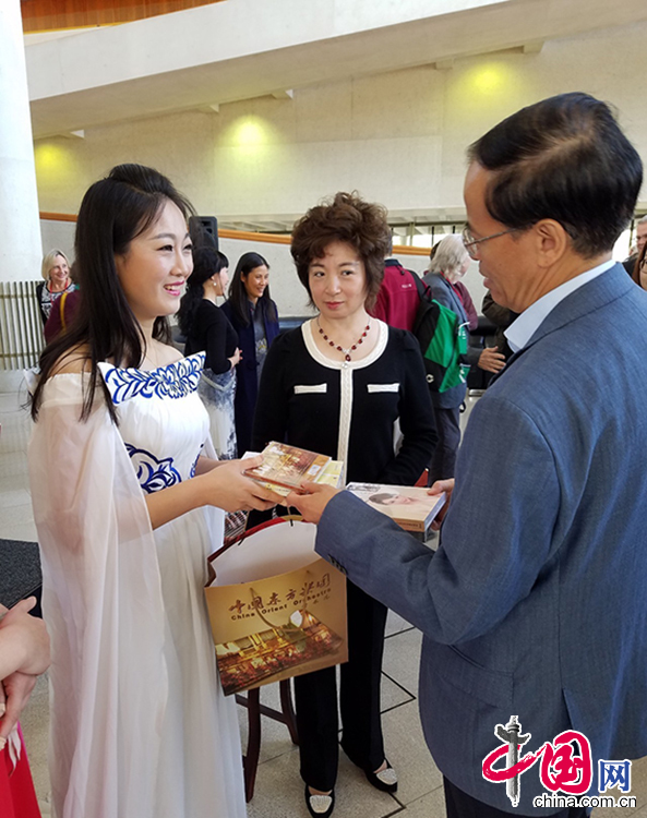 中国驻澳大利亚大使馆大使成竞业与夫人同姜淼亲切交谈。