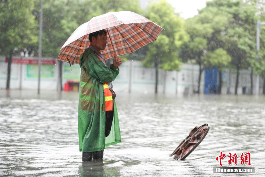 6月12日,贵阳市民骑摩托车在积水路段行驶。当日,贵阳市气象台于6时28分将暴雨黄色预警信号升级为暴雨红色预警信号,持续降雨造成贵阳市多处路段严重积水。中新社记者贺俊怡 摄