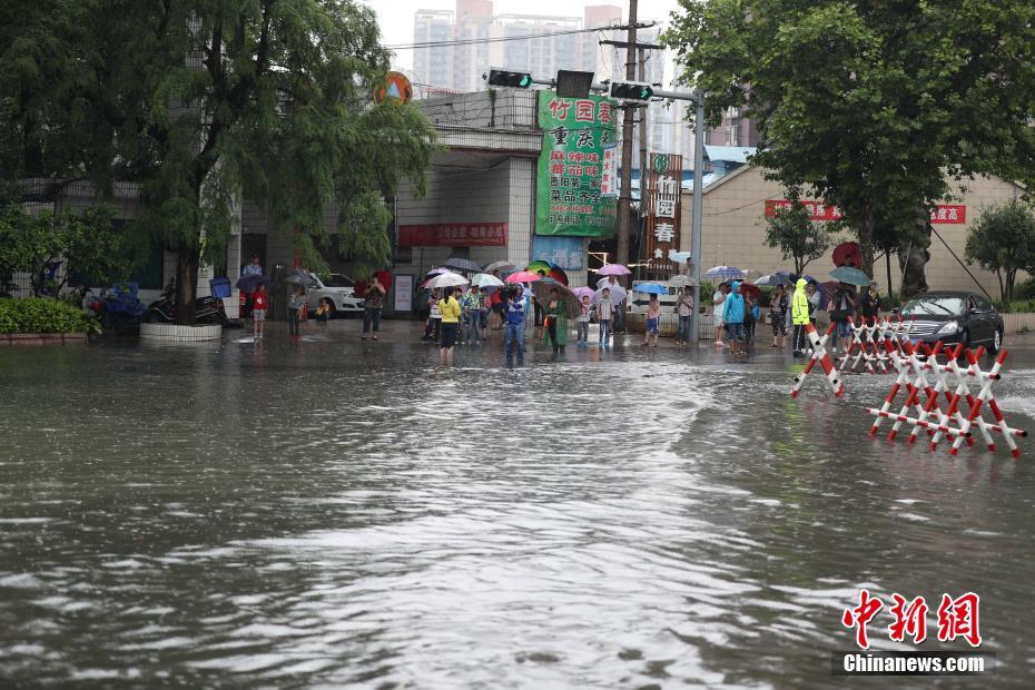 6月12日,贵阳市南厂路积水严重。当日,贵阳市气象台于6时28分将暴雨黄色预警信号升级为暴雨红色预警信号,持续降雨造成贵阳市多处路段严重积水。中新社记者贺俊怡 摄
