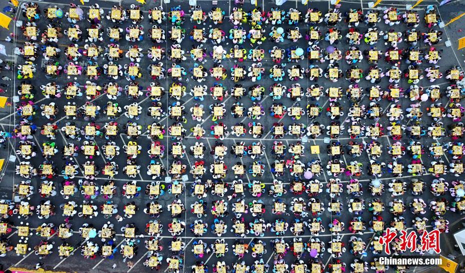 7月29日晚,河南洛阳老君山举行“万人蟠桃宴”宴请四方宾朋,现场数千人依次就座同时开席,从高空俯瞰场面壮观震撼。