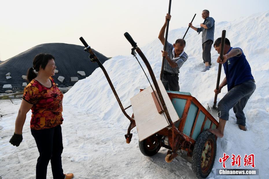 从盐田里运出来的盐堆积成山。 中新社记者 王东明 摄