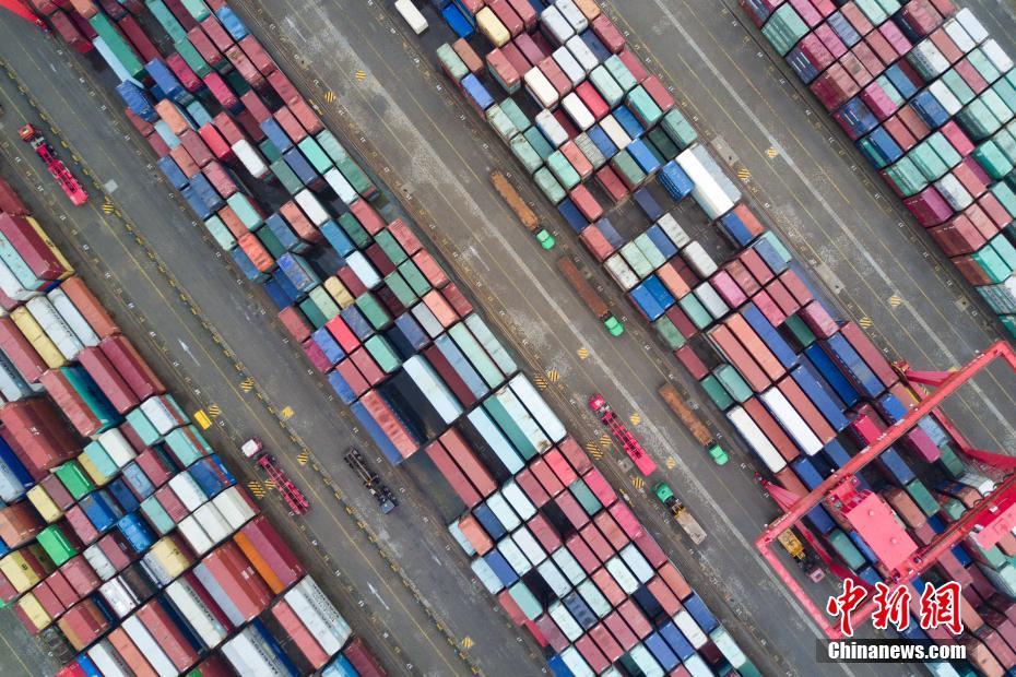 8月16日,航拍江苏泰州港,不同颜色的集装箱整齐排列犹如彩色积木。当日,“全景看江苏”视觉创作大赛走进泰州高港,来自各地的摄影家们用镜头聚焦当地经济发展成果。据介绍,泰州港位于江苏省泰州市高港区,是长江中上游西部地区物资中转运输的重要口岸,也是江海河联运、铁公水中转、内外贸运输的节点,具有装卸、仓储、物流服务等综合化功能。中新社记者泱波 摄
