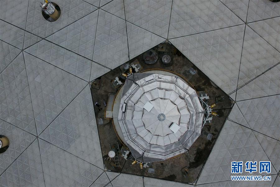 “中国天眼”FAST馈源舱(8月9日航拍)。