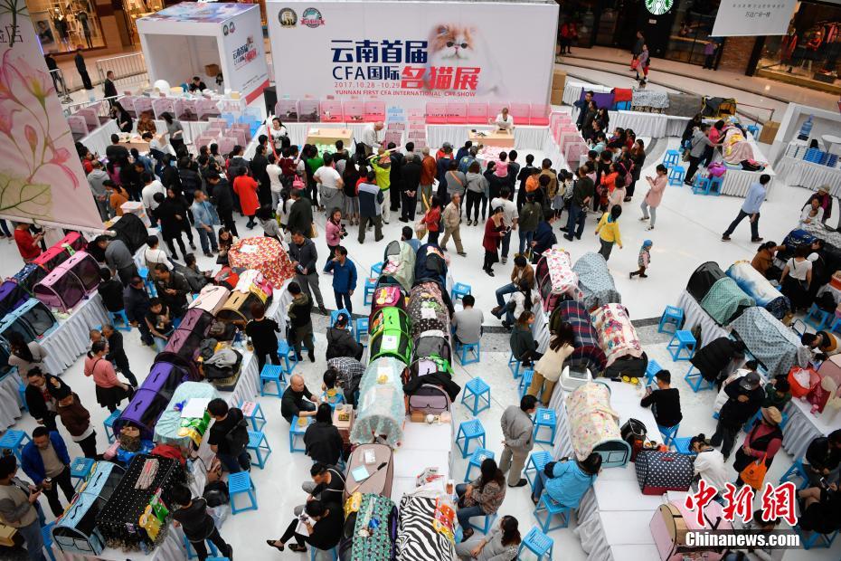 10月29日,活动现场。当日,云南首届CFA国际名猫展在昆明CBD万达广场举办,111只喵星人亮相现场“选美”,吸引众多爱猫人士现场围观。中新社记者刘冉阳 摄
