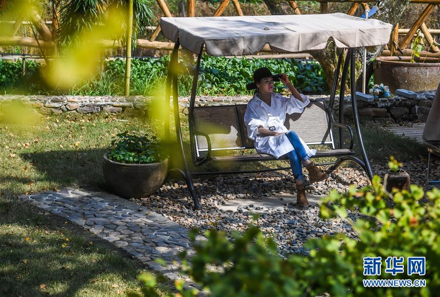 11月4日,游客在“十里古银杏长廊”里一家名为望雅千怡的民宿中休憩。新华社记者徐昱摄