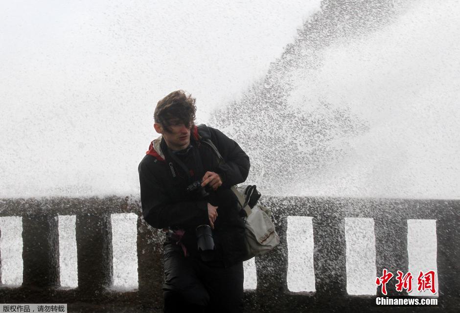 当地时间2014年3月3日,法国比亚里茨遭受巨浪侵袭,据悉法国沿海已有11个地区遭受了不同程度的侵袭。