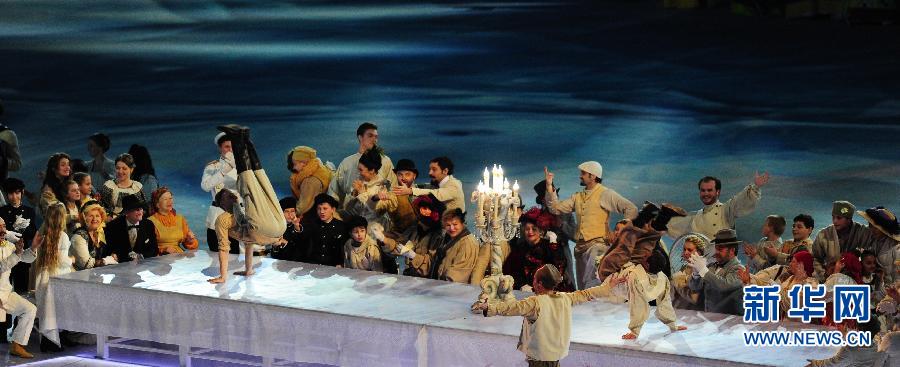 3月7日,索契残冬奥会开幕式上的表演。当日,第11届冬季残奥会开幕式在索契菲施特体育场举行。45个国家和地区的近550名运动员将在本届残冬奥会中角逐高山滑雪、冬季两项、越野滑雪、轮椅冰壶和雪橇曲棍球5个大项、72个小项的比赛。新华社记者戴天放摄
