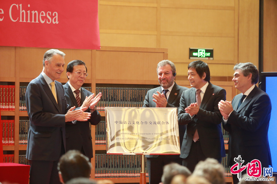 16日上午,正在中国进行国事访问的葡萄牙共和国总统卡瓦科•席尔瓦访问北京外国语大学,出席“中葡语言文化合作交流联合体”成立仪式,为“中葡语言文化合作交流联合体”揭牌,并发表了主题为“今日葡萄牙”的演讲。中国网记者 熊颖 摄