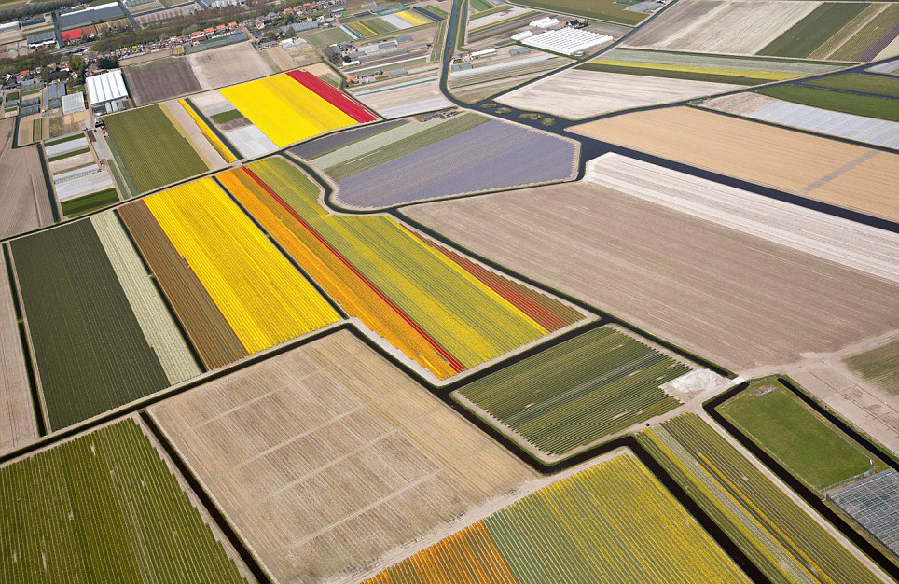 2014年6月7日,每日邮报发布一组航拍照片,展示了地球上世界各地城市或景观在空中鸟瞰时展示出不可思议的壮丽景色。图为荷兰南部郊区的郁金香小镇