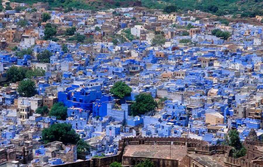 2014年6月7日,每日邮报发布一组航拍照片,展示了地球上世界各地城市或景观在空中鸟瞰时展示出不可思议的壮丽景色。图为焦特布尔,印度拉贾斯坦邦的第二大城市,被称为“蓝色的城市”。