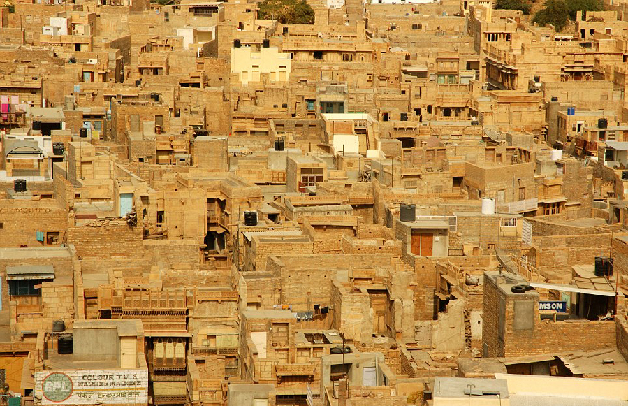 2014年6月7日,每日邮报发布一组航拍照片,展示了地球上世界各地城市或景观在空中鸟瞰时展示出不可思议的壮丽景色。图为贾伊,印度拉贾斯坦邦的黄色石头镇。