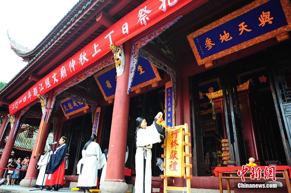 图为四川都江堰文庙举办2014年秋季祭孔大典仪式现场。 安源摄