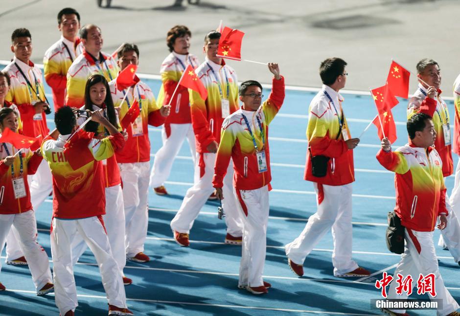 10月4日,第17届亚运会闭幕式在韩国仁川市亚运会主体育场举行。图为中国队运动员入场。中新社记者 张浩 摄