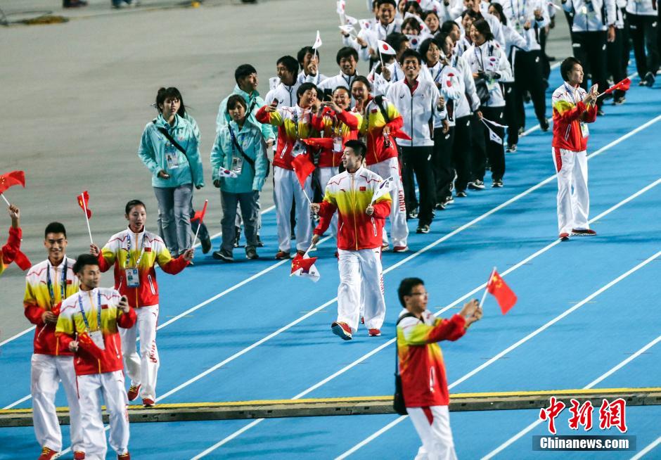 10月4日,第17届亚运会闭幕式在韩国仁川市亚运会主体育场举行。图为中国队运动员入场。中新社记者 张浩 摄